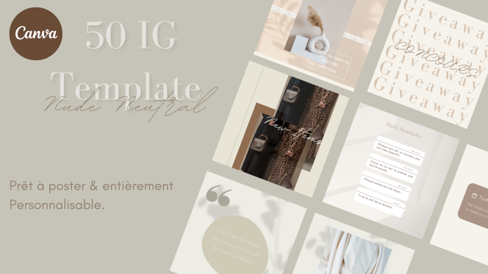Voici vos 50 templates prêt à être poster sur IG. Ces templates sont entièrement personnalisables et vous permettent de gagner un temps fou lors de la création de votre contenu.